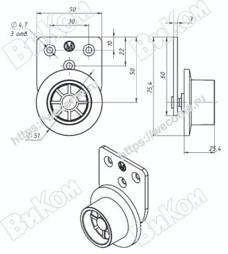 Ролик Выкатной D=50 H=68 Обрезиненный №105 (35кг) (50*, 100*)