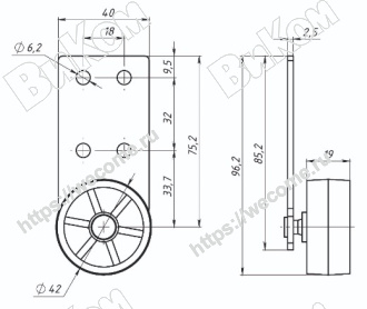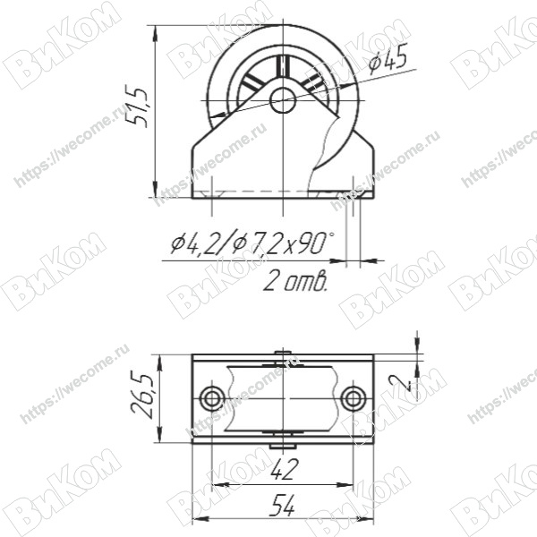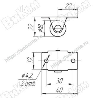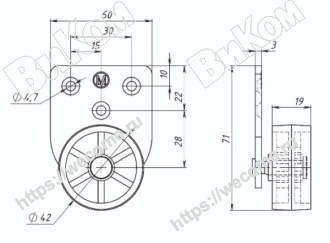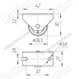 Ролик Консольный D=42 мм с плоским кронштейном, Обрезиненный (200*) Иж