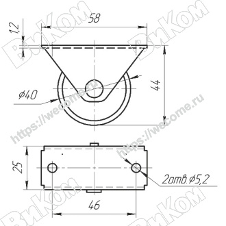 Ролик Выкатной Большой Обрезиненный Н=44 (150*) К