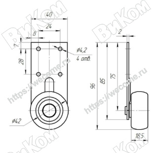 Ролик Выкатной D=18мм Обрезиненный (350*) Иж