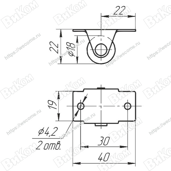 Ролик консольный D=42 мм с плоским кронштейном, обрезиненный (200*) Иж