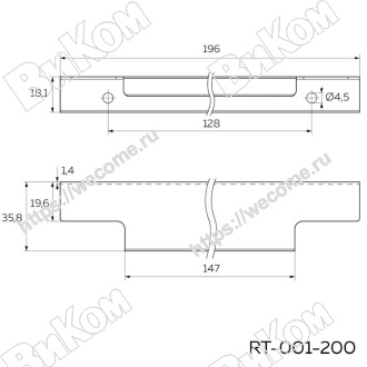 Ручка торцевая RT-001-200, хром KERRON (40*)